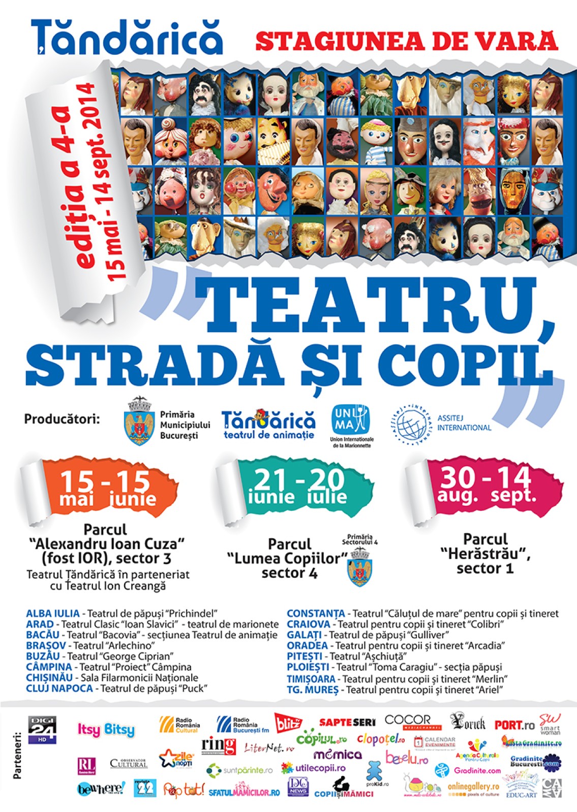 Parteneri media: Digi 24, Itsy Bitsy, Radio Bucuresti Fm, Radio Romania Cultural, Blitz Tv,  Cocor Media Channel, BeWhere, Revista 22, Revista Pap tot, Romania Libera,  Ziarul Ring, Observatorul Cultural, Yorik, Sapteseri, Zile si nopti, Port.ro, Liternet.ro, Dcnews, Calendarevenimente.ro, Copilul.ro, Clopotel.ro, Suntparinte.ro, Utilecopii.ro, Mamica.ro, Sfatulmamicilor.ro, Copiisimamici.ro, Prokid.ro, Melc- codobelc.ro,  ListaGradinite.ro, GradiniteBucuresti.com, Gradinite.com, Onlinegallery.ro, Agenda culturala pentru copii, bebelu.ro, smartwomen.ro