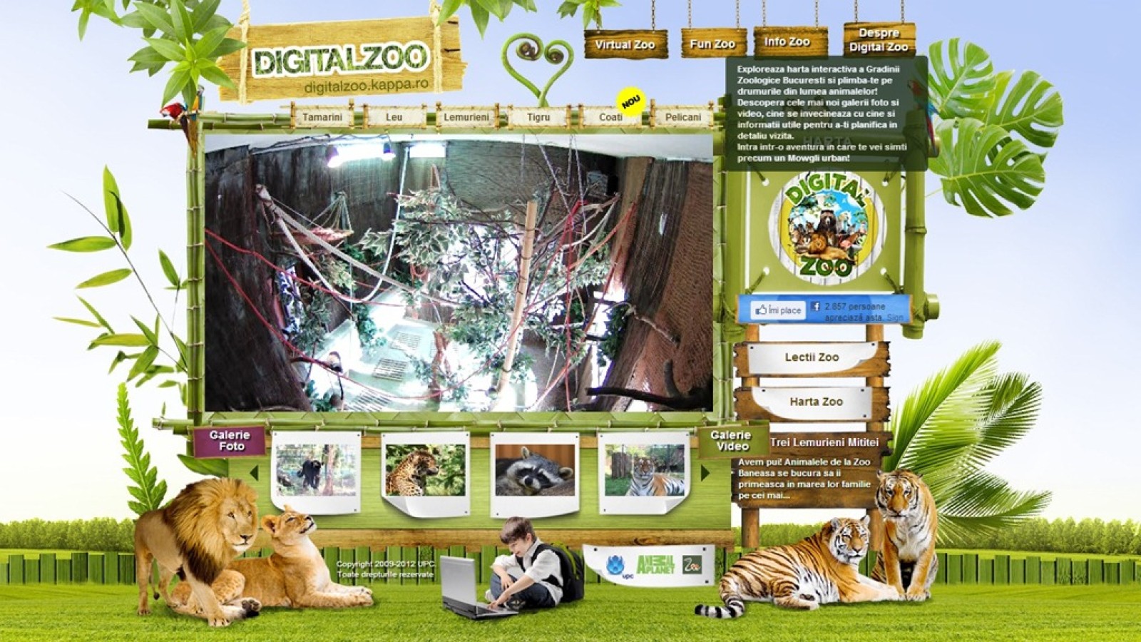 Unul dintre cele mai interesante si mai atractive proiecte din online-ul romanesc, dedicat celor mici dar nu numai, este Digital Zoo, o Gradina Zoologica Digitala. Un proiect realizat de compania de cablu UPC in colaborare cu Gradina Zoologica Bucuresti, Digital Zoo este o ocazie extraordinara pentru copii dar si pentru parintii lor de a vedea live 24 de ore din 24, 7 zile din 7 animalele de la Gradina Zoologica Baneasa, dar si stiri si noutati despre tot ce se intampla acolo.
