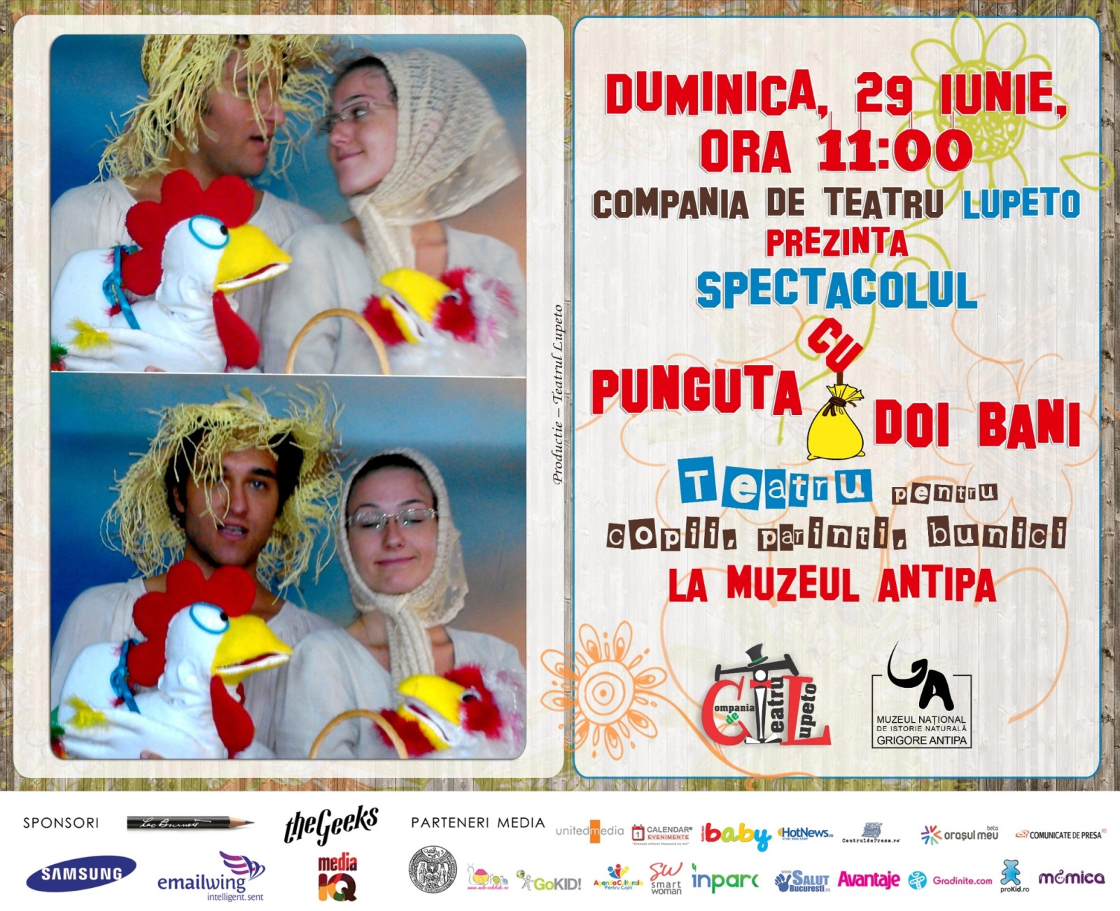 Muzeul National de Istorie Naturala „Grigore Antipa”, alaturi de Compania de teatru Lupeto, va invita duminica, pe 29 iunie 2014, incepand cu ora 11.00, in gradina de vara a Muzeului „Antipa” la spectacolul de teatru “Punguta cu doi bani”.
