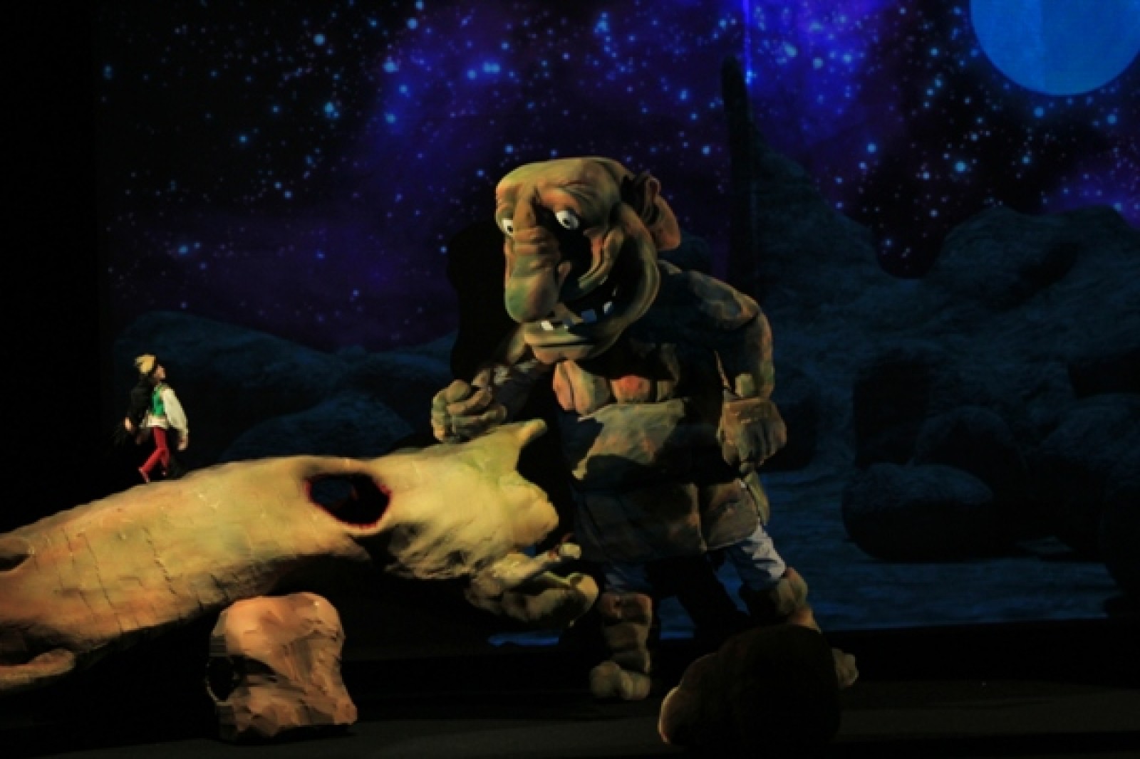 Spectacolul pastreaza linia clasica a povestii, folosind mijloacele teatrului de animatie cu papusi de diferite marimi si tehnici de manuire. Noutatea vine din grafica si animatia digitala, special conceputa pentru acest spectacol, care se pliaza pe manuirea papusilor, pe accentele muzicale si pe elementele scenografice.